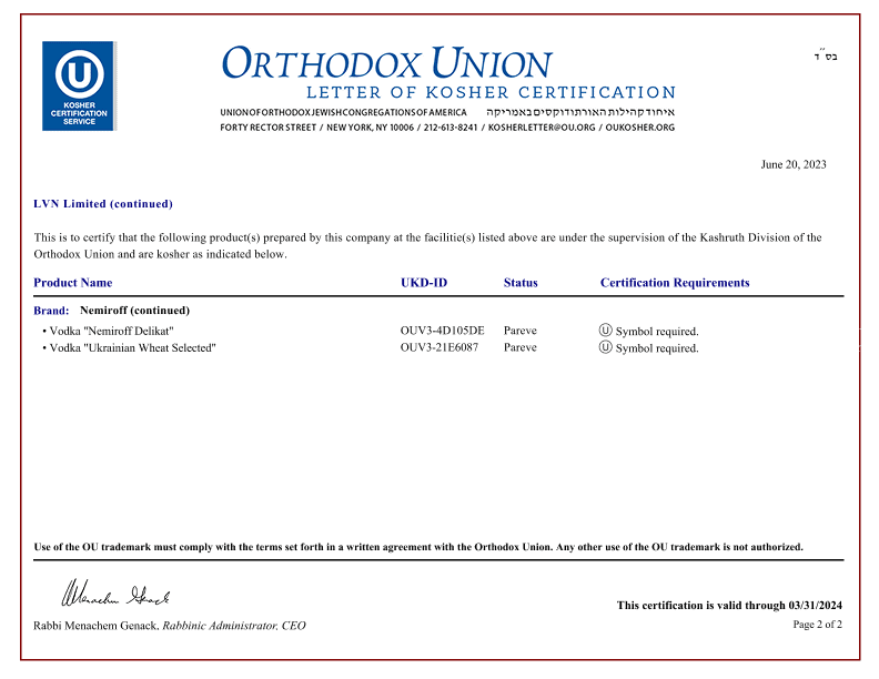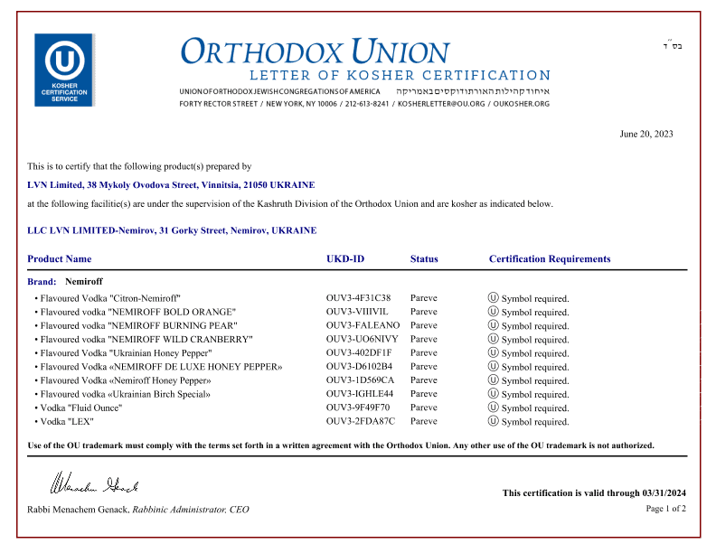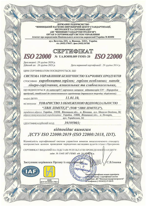 Nemiroff products hold international quality certificates such as ISO 9001, ISO 22000, FSSC 22000 and Kosher Certification, which confirm their safety and high quality.