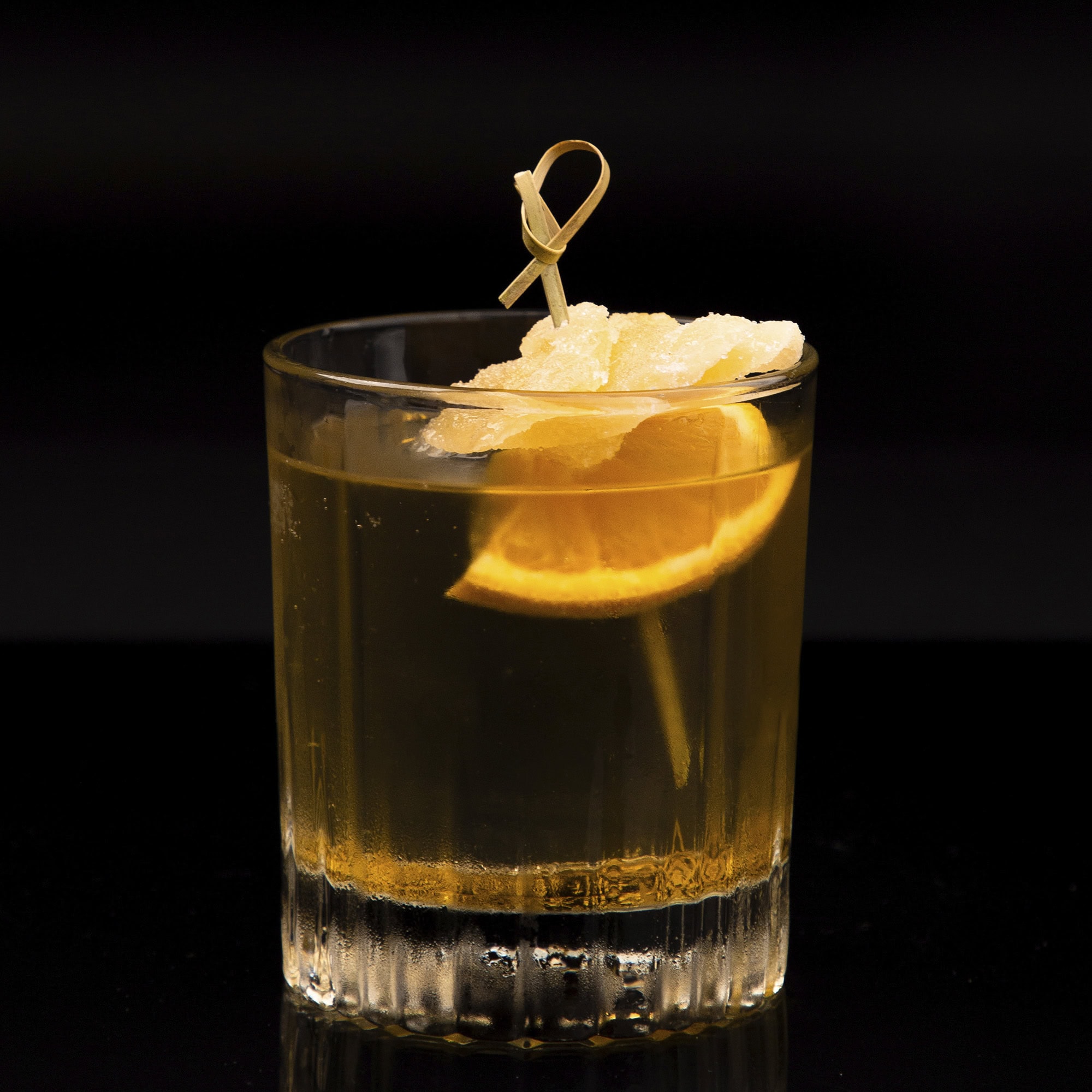 The Honey Pepper & Ginger cocktail can be garnished with a few sprigs of thyme or mint, which will not only add to its aesthetic appearance, but also emphasize its herbal notes.
